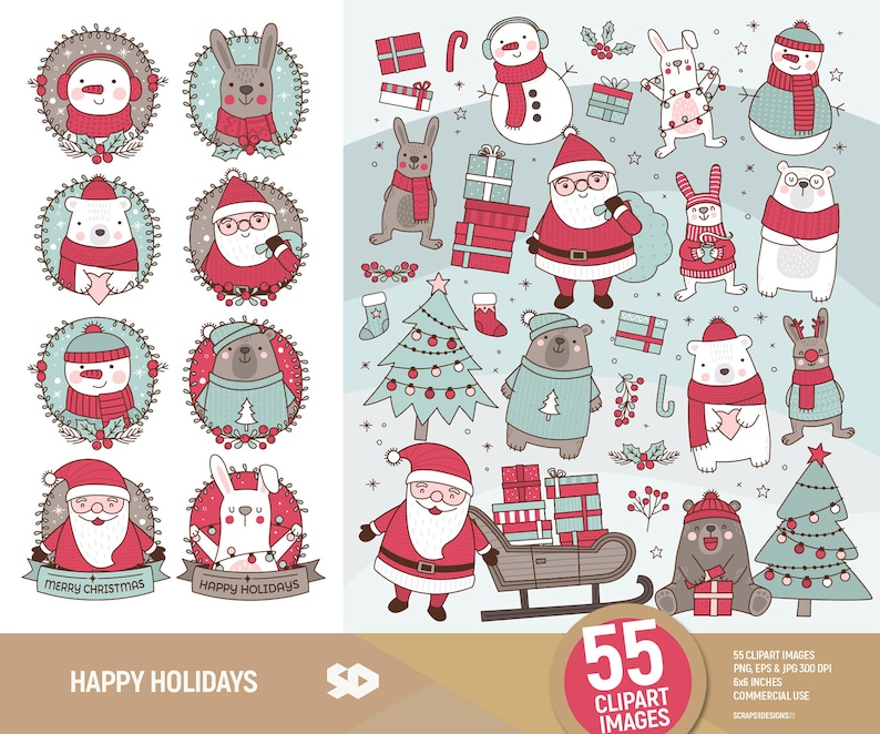 Happy Holidays Clipart Santa Clip Art Christmas Clipart Etsy - Merry christmas clipart black and white free.
