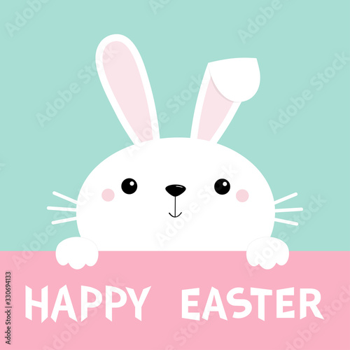 Happy Easter Bunny Rabbit Face And Paws Cute Cartoon Kawaii Funny Baby Character Long Ears Farm Animal Collection Blue Background Spring Greeting Card Isolated Flat Design Stock Vector Adobe Stock - We hope that you will find wishes, greetings and.