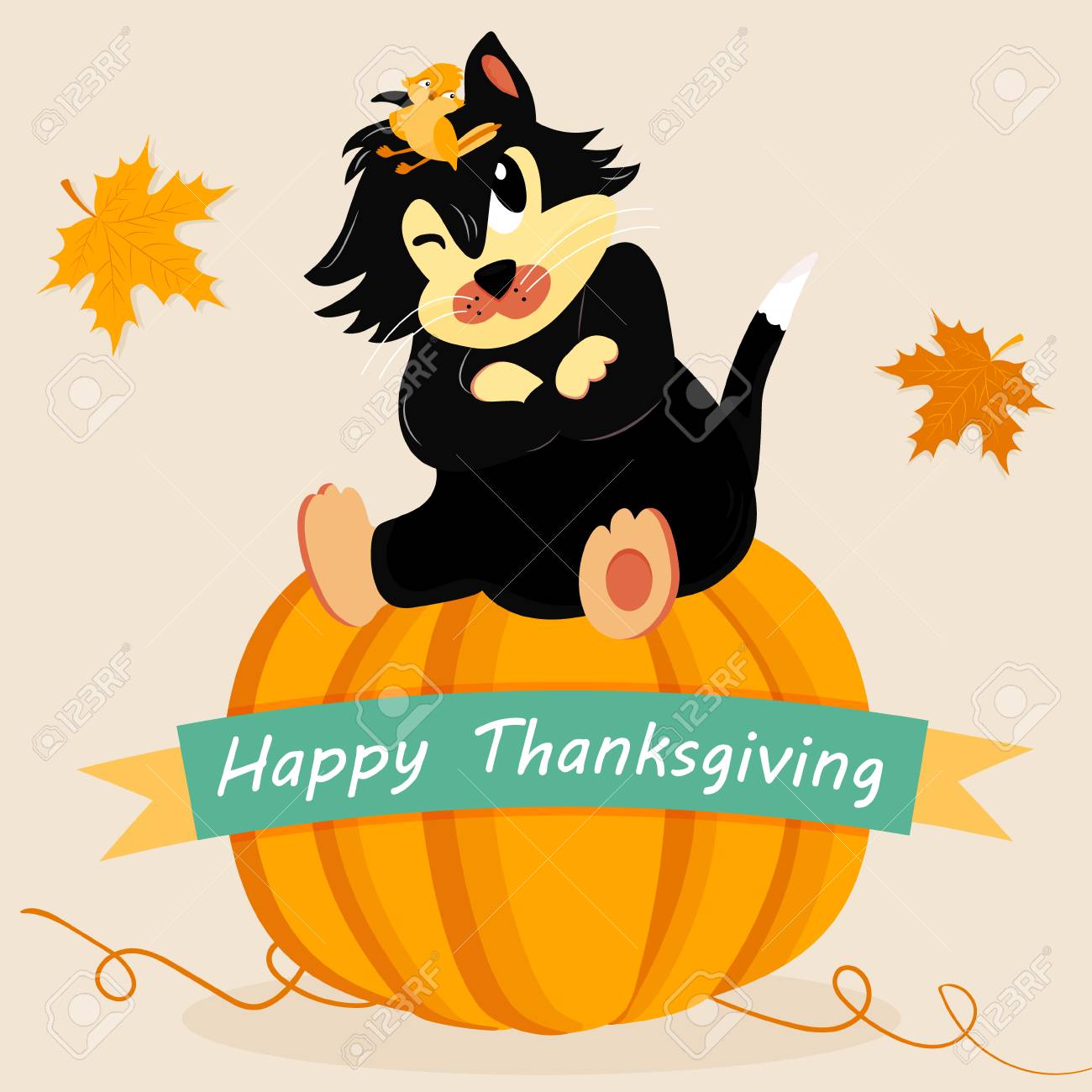 Holiday Card For Thanksgiving Day With A Cat Pumpkin And Bird Royalty Free Cliparts Vectors And Stock Illustration Image 89129294 - Here you can explore hq thanksgiving cats transparent illustrations, icons and clipart with filter setting like size, type, color etc.